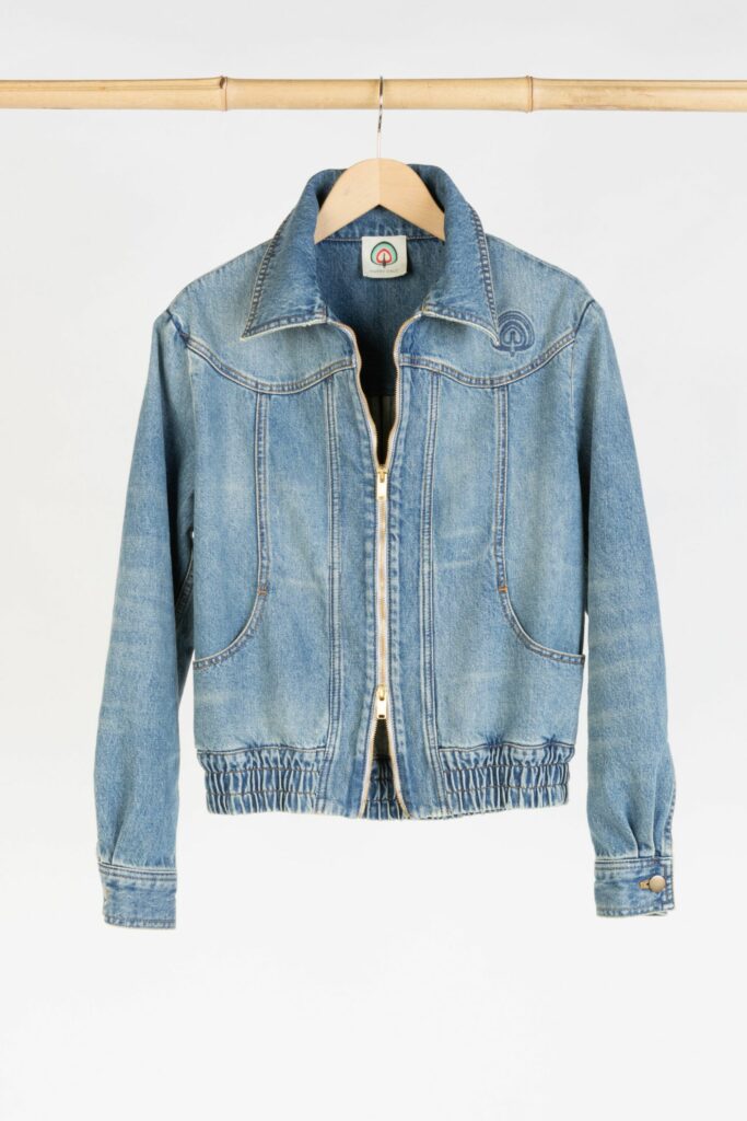 BAUMWOLLE GOTS ZERTIFIZIERT390 €Die FLEUR Jacke ist eine kurze Jacke aus reichhaltigem Denim, hergestellt aus GOTS-zertifizierter Bio-Baumwolle mit einzigartigen Details. Er hat einen spitzen Kragen, der wie ein Hemdkragen gestaltet ist. Seine zwei Taschen in Form von Blumen verleihen ihm einen gewagten Look. Unser Happy Haus Peacock ist auf der Rückseite der Jacke aus einem tabakfarbenen Garn gestickt, das sich an allen Steppnähten der Jacke wiederfindet und einen schönen Kontrast zu dem rohen Denim bildet. Eine ikonische Jacke !