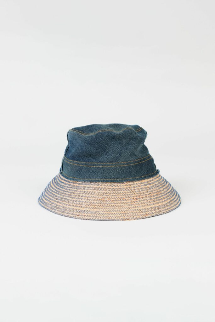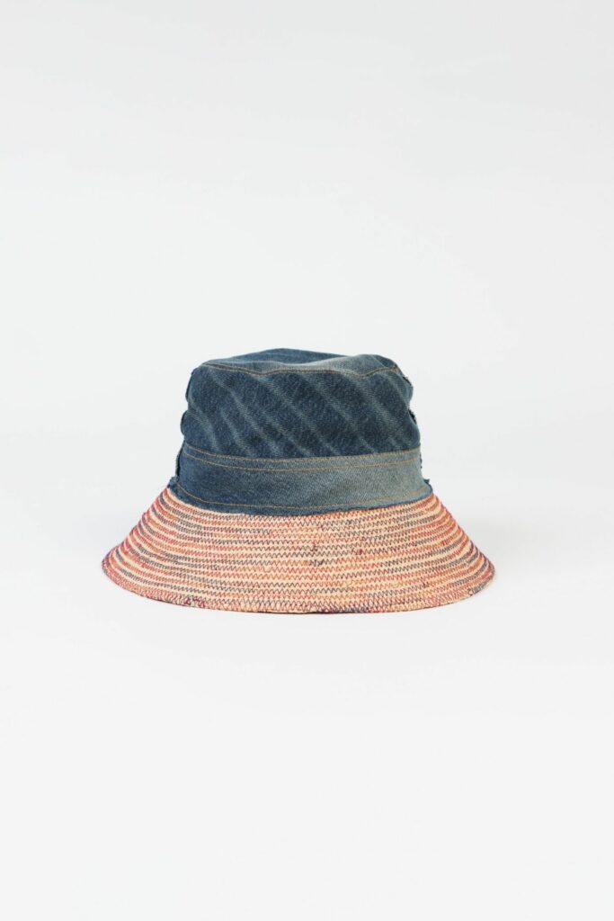 RECYCELTE BAUMWOLLE & RAFFIA285 €Der HAPPY HAT ist das Ergebnis einer Zusammenarbeit mit Lola Hats, einer in New York ansässigen französischen Hutdesignerin, die seit Jahren wunderschöne Hüte anbietet, meist aus natürlichem Bast, den man so leicht wie einen Bob trägt.