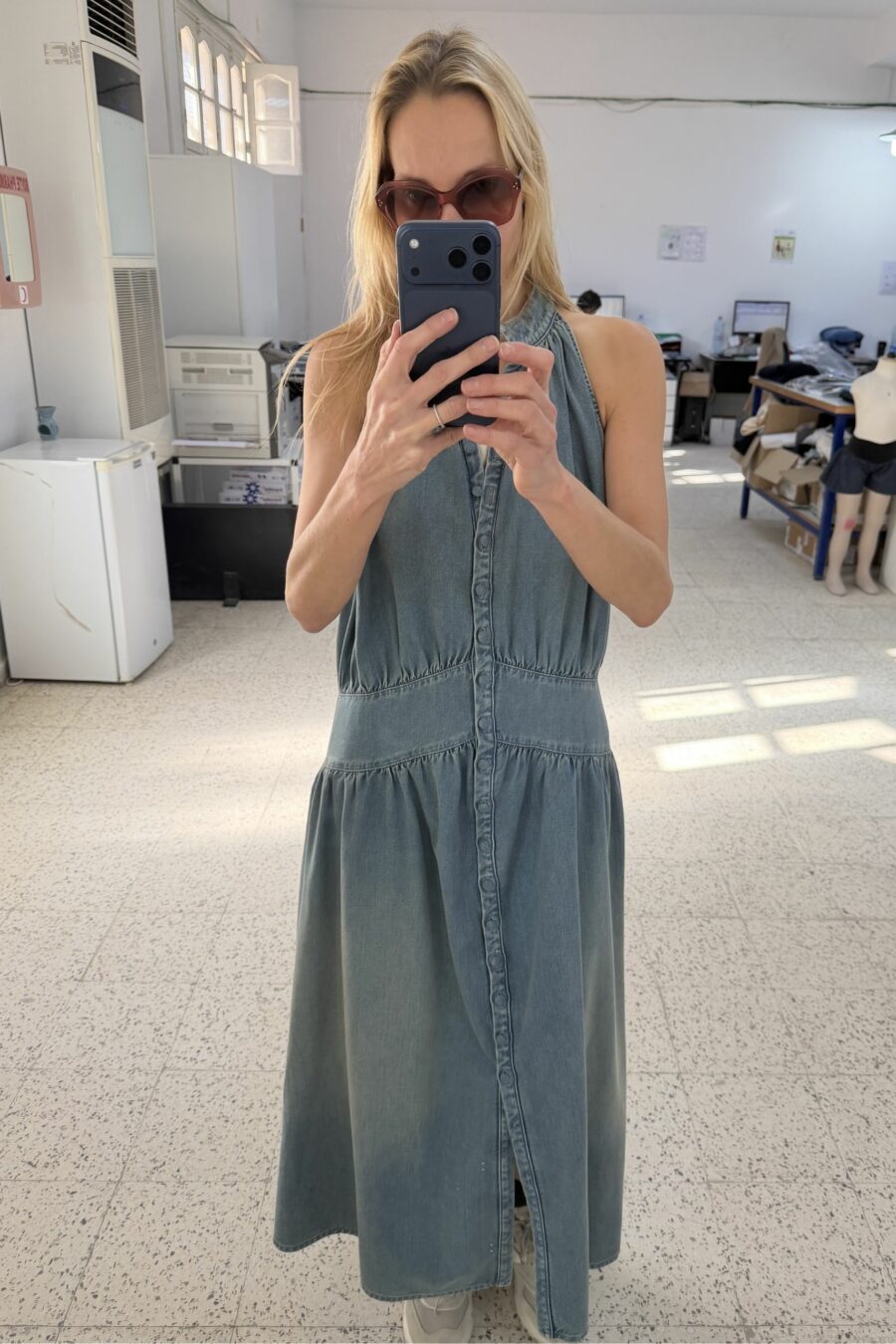 Unser SUMMER KLEID hat einen langen, ausgerissenen Schnitt und eine dezent markierte Taille. Es bietet einen fließenden Fall, der auf natürliche Weise mit den Bewegungen einhergeht.