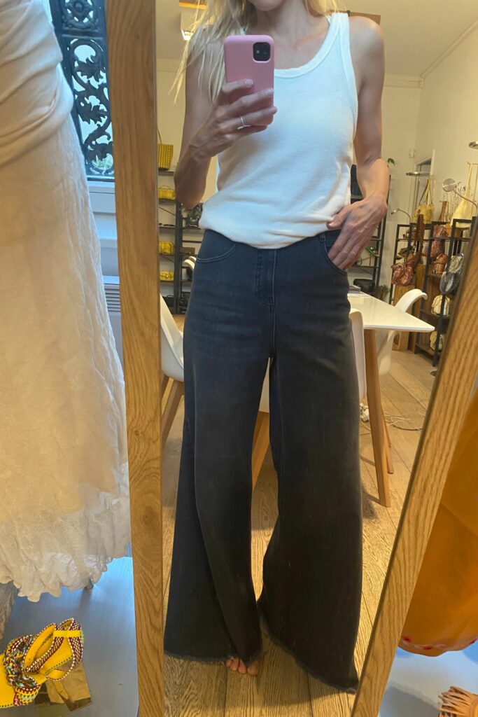 The OVERSIZE pants are our flagship model. Made of cotton, they have a flared cut, a regular length, a wooden button for the front closure and five pockets. Wear as you like: high waist, or low waist by taking a size above your usual size!
