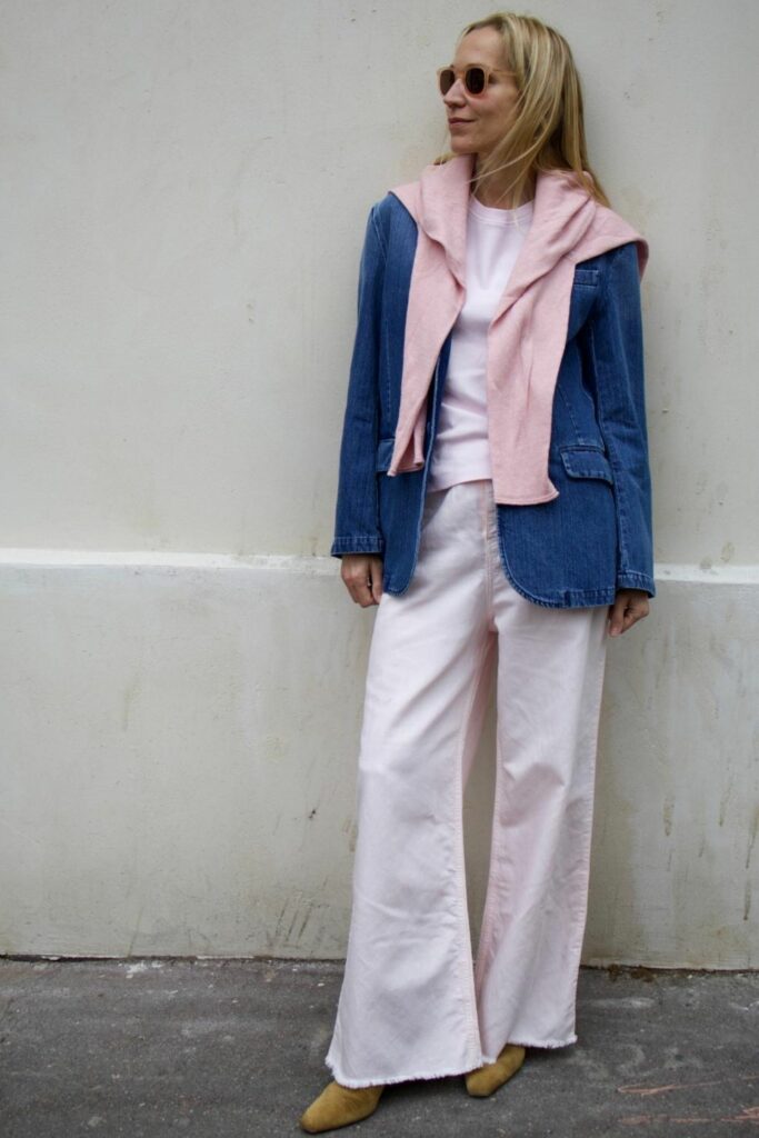 Made from our new lightweight denim that has a weave on which the direction of the warp is more visible. This gives it more character and a more marked vintage effect. It is perfect to match many pants, skirts or dresses. It’s an interesting piece to play overlays.