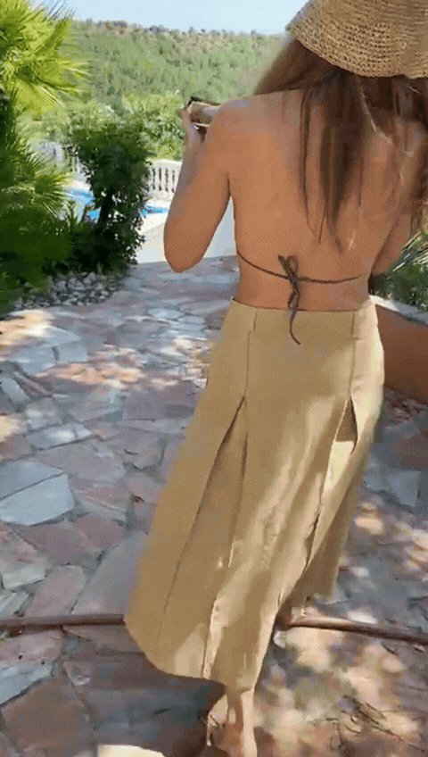 Our FEUILLE skirt is elegant and timeless. It is long and has a flared cut. It has three clamps at the front and two at the back, which gives it a nice volume and drop. Its closure system is made from a zip on the left side. It offers beautiful details such as the embroidery of our tone-on-tone peacock, it has two pockets at the front and loops that allow to add a belt. The FEUILLE skirt shapes the silhouette in an elegant way, it is chic and casual.