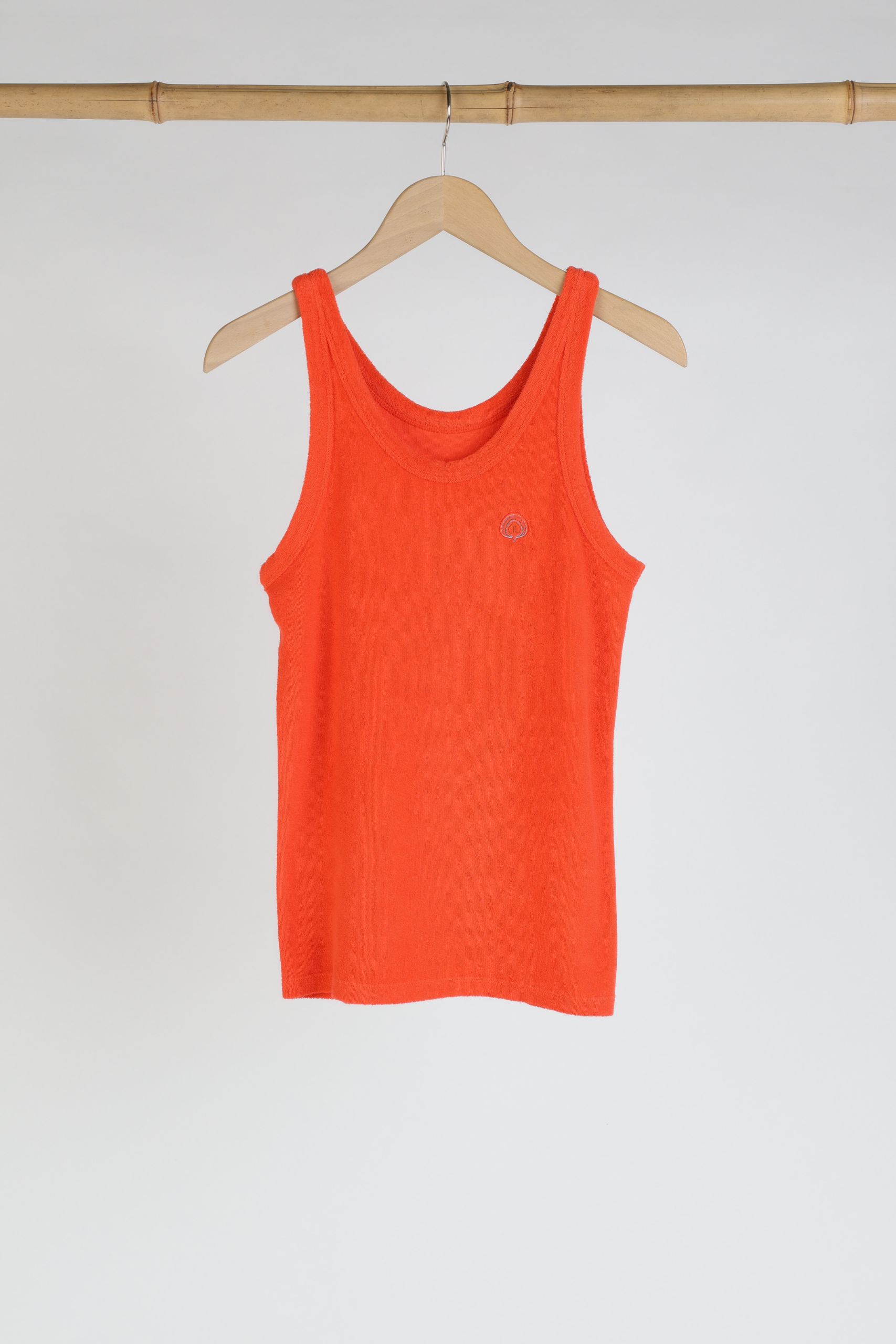 Our HAPPY TANK top, a soft and essential piece. It is made of terry jersey, it is incredibly pleasant to touch and ultra easy to wear in all circumstances. A wardrobe essential, both simple and joyful.