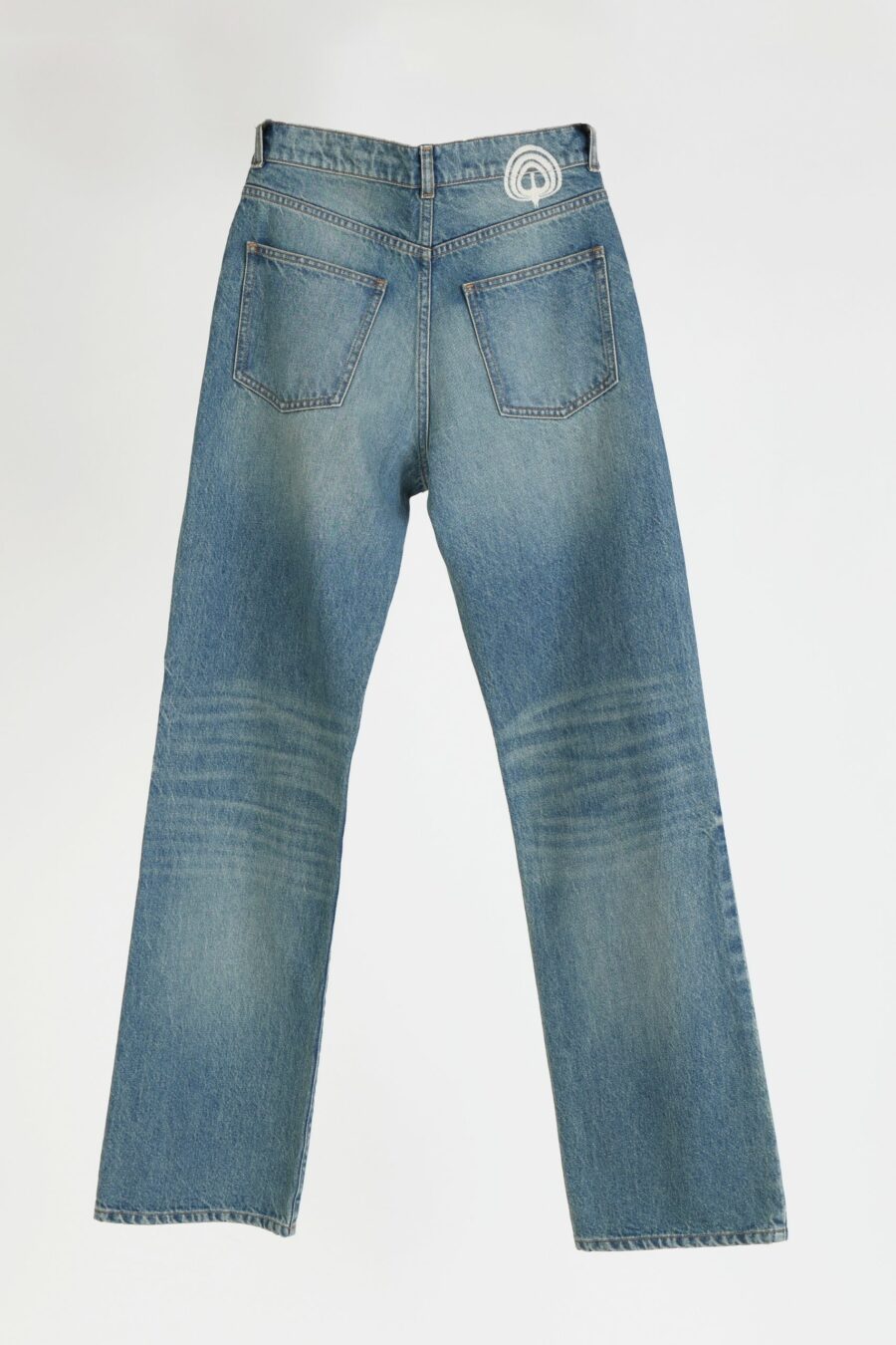 It is made in our «Vintage Blue» wash, a variant of our flagship «Light Blue» wash with stronger treatment, which gives it a «Vintage» look. It is made of our recycled denim.