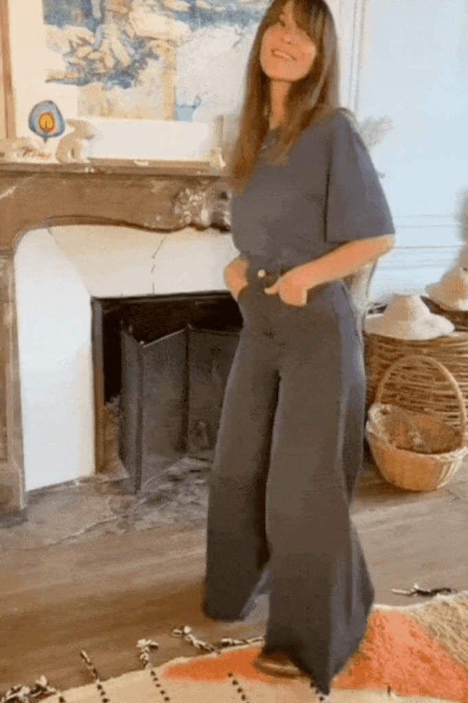 Il y a deux façons de le porter : taille haute ou bien taille basse comme Sabine sur la photo. Pour cette version plus décontractée, n’hésitez pas à prendre une taille au-dessus de votre taille habituelle !