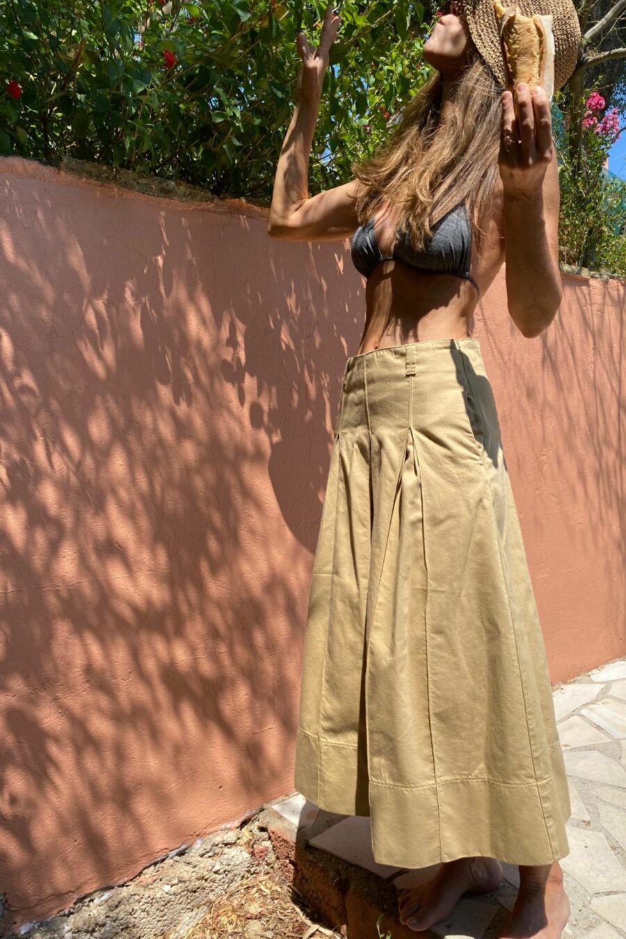Notre jupe FEUILLE est élégante et intemporelle. Elle est longue et a une coupe évasée. Elle possède trois pinces l’avant et deux à l’arrière, ce qui lui confère une joli volume et tombé. Son système de fermeture se fait à partir d’un zip sur le coté gauche. Elle offre de beaux détails comme la broderie de notre paon ton sur ton, elle possède deux poches à l’avant et des passants qui permettent d’ajouter une ceinture. La jupe FEUILLE façonne la silhouette de manière élégante, elle est chic et décontractée.